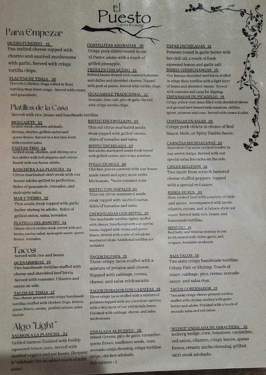 El Puesto Cocina & Lounge isn’t just about dining; it’s about creating moments. With hearty portions and an eclectic mix of traditional and unique entrees, each visit feels special and irresistible. So grab your friends, family, or loved ones, and come discover why so many have fallen in love with this hidden gem. Your taste buds are waiting!